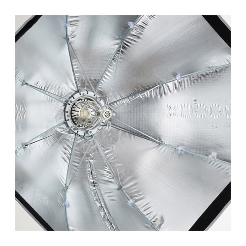 Este modificador incorpora una placa deflectora interna que, al retirarse, transforma el softbox en un beauty dish, ideal para obtener una luz más contrastada y llamativa. También cuenta con un deflector interior blanco y un difusor exterior, que aseguran una iluminación homogénea y envolvente. Su interior plateado reflectante maximiza la salida de luz y distribuye la iluminación de forma uniforme.