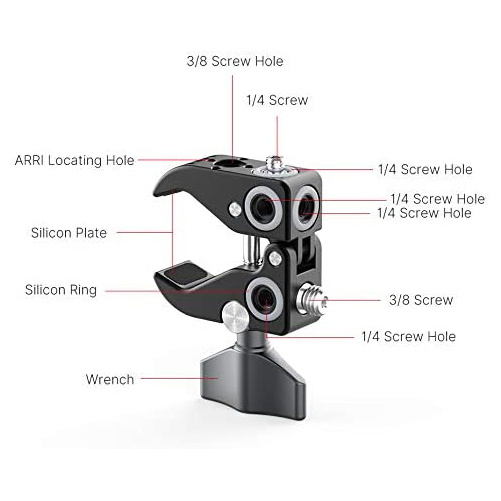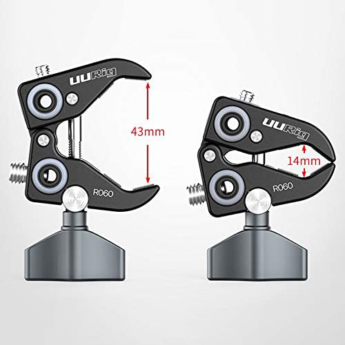 Tenaza Super Clamp versátil UURig R060, con roscas y acoples de 3/8” y 1/4″.