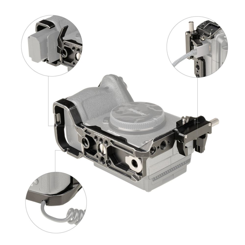 Está diseñada para proteger la cámara y proporcionar puntos de montaje para accesorios. La jaula modular consiste en un riel NATO y una jaula en forma de U. El riel NATO se asegura en la parte superior mediante dos tornillos de 1/4″-20 y se retira para permitir la instalación del asa superior XLR original; la jaula en forma de U se fija mediante tornillos de 1/4″-20 en ambos lados y en la parte inferior para evitar torceduras. Cuenta con una abrazadera de cable dedicada a proteger las interfaces para garantizar una transmisión de señal estable.