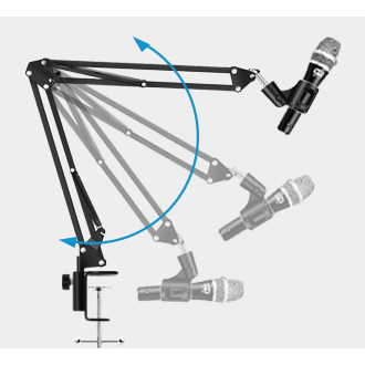 Brazo articulado tipo tijera para micrófonos, de 80 cm de largo máximo.
