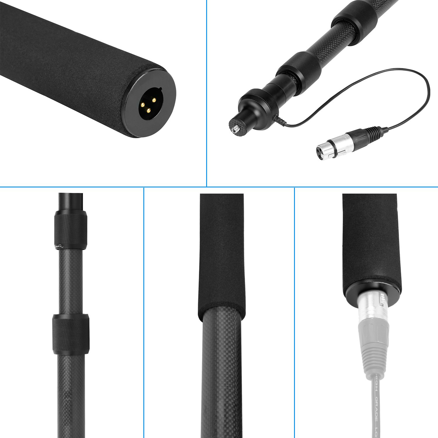 Caña / Boompole de fibra de carbono, extensible de 1 a 2.5 metros de largo, con cable XLR interno, para grabación de sonido profesional.