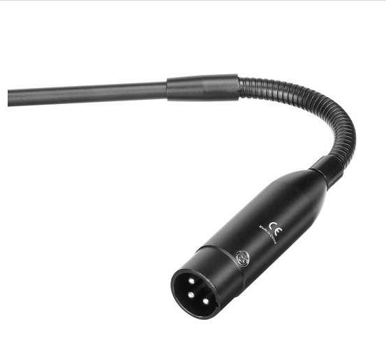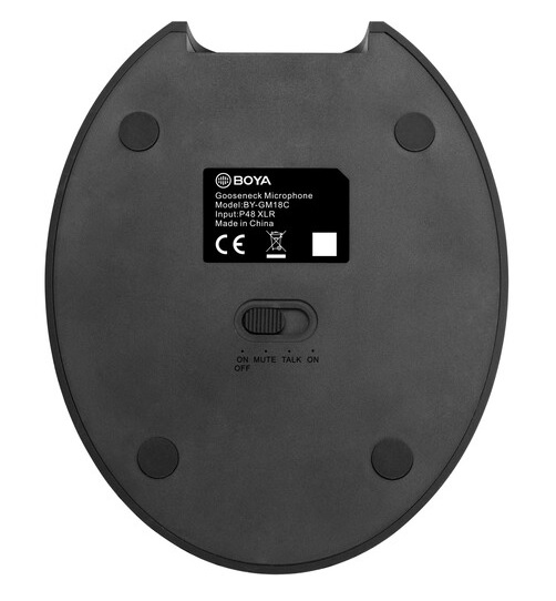 El cuello articulado del micrófono permite colocar el receptor de voz con precisión frente a la persona hablando, obteniendo así, un sonido optimo. En su base, cuenta con un switch que permite cambiar libremente de modo: ON/OFF, MUTE (silenciar), TALK (hablar) y ON (para mantener prendido el micrófono, sin necesidad de presionar algo para hablar).