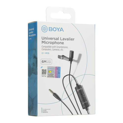 Micrófono corbatero lavalier omni direccional Boya BY-M1S, perfecto para video y diseñado para teléfonos celulares, camaras DSLR, video cámaras, grabadoras de sonido, PC, etc.