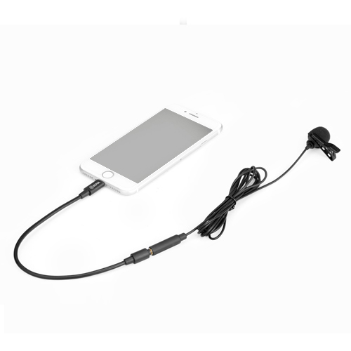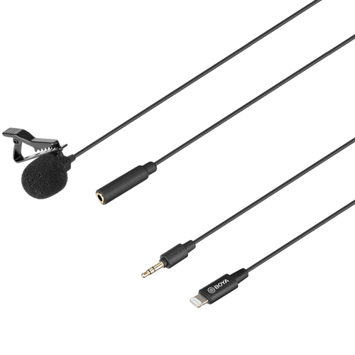 Micrófono corbatero lavalier omni direccional Boya BY-M2, perfecto para video y grabaciones de audio, diseñado específicamente para teléfonos ITeléfono, IPad, IPod con sistema operativo iOS.