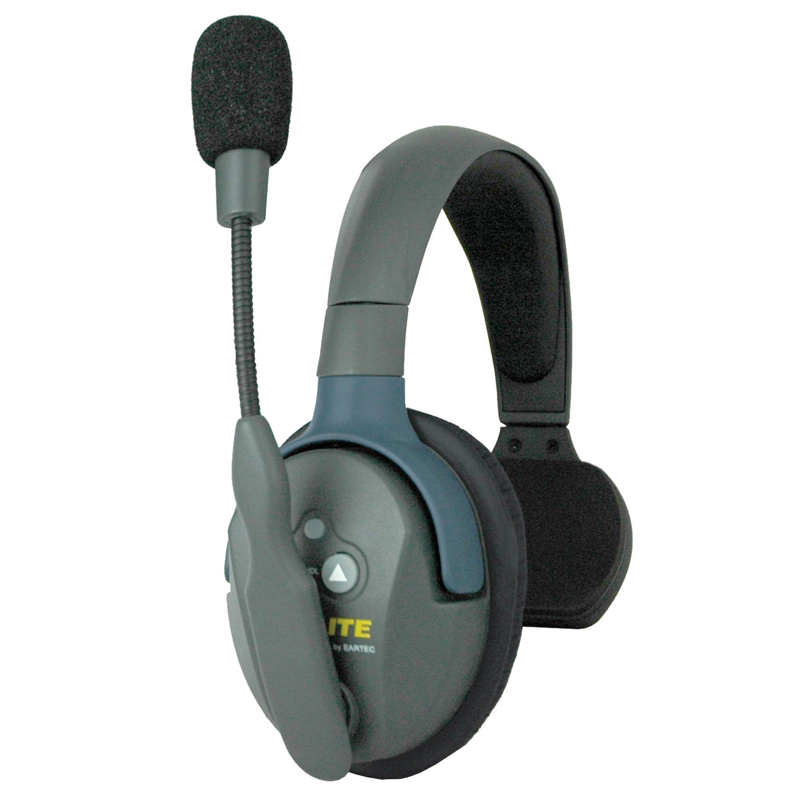Intercomunicador de diadema full-duplex Eartec UltraLITE de dos oídos, con batería recargable de litio.