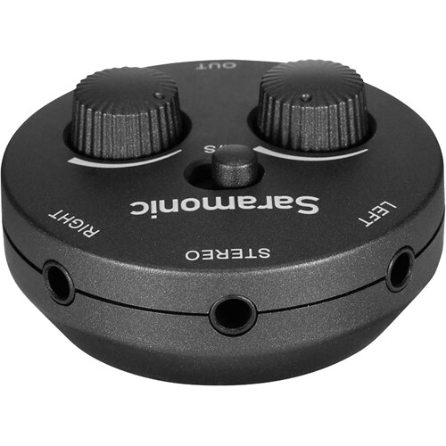 Mezclador pasivo Saramonic AX1, de 2 canales, con salida TRS y TRRS para cámaras y celulares.