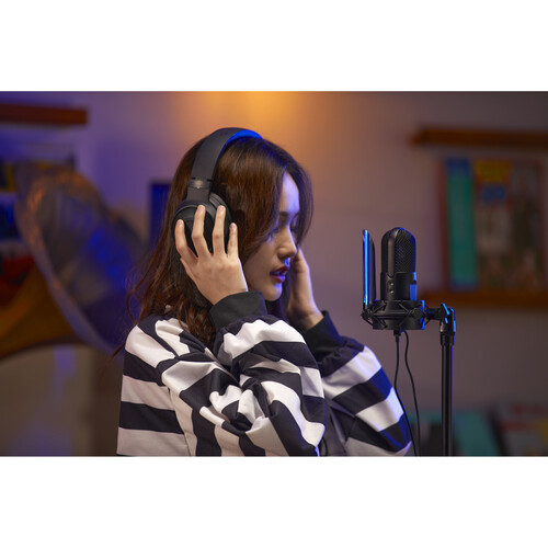 Es un micrófono con conexión USB de condensador cardioide de diafragma grande con un amortiguador y un filtro pop muy adecuado para grabar voz, voces e instrumentos. El micrófono es plug-and-play con dispositivos Windows, macOS e iOS, lo que le permite simplemente enchufar el micrófono y comenzar a grabar de inmediato.