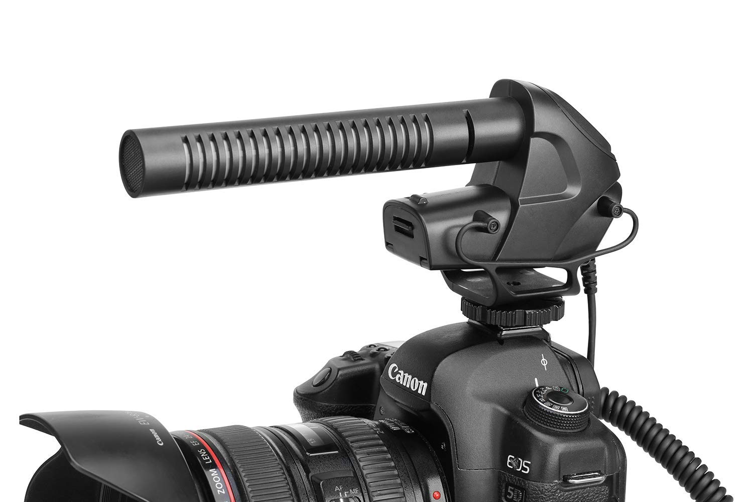 Posee conector TRS de 3.5mm estándar, entrada de 3.5mm para auriculares, espuma de atenuación, rompe viento profesional, y acople a la cámara con amortiguación de golpes. Se alimenta con 2 baterías AA que le dan hasta 120 horas de autonomía.