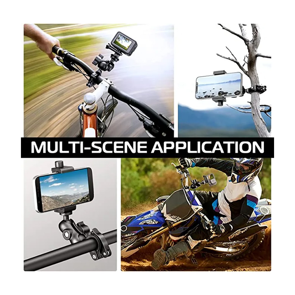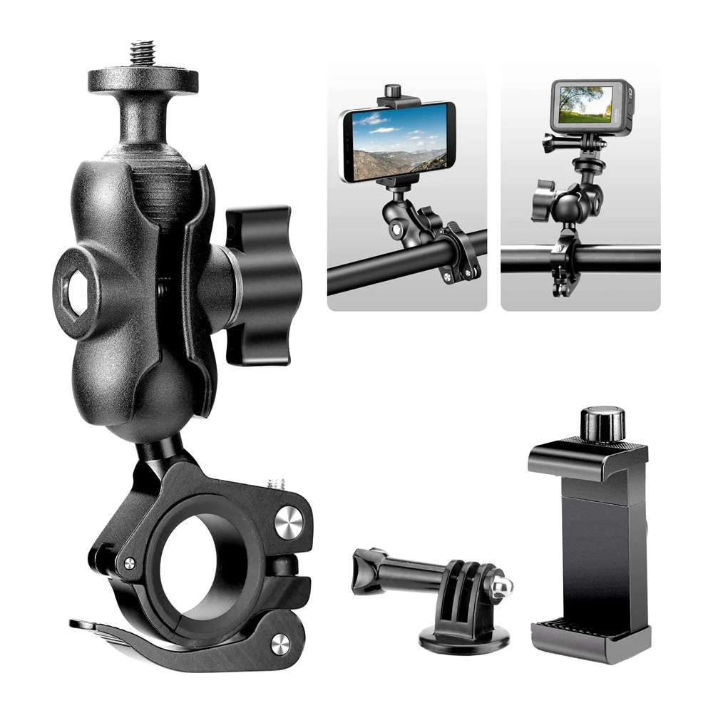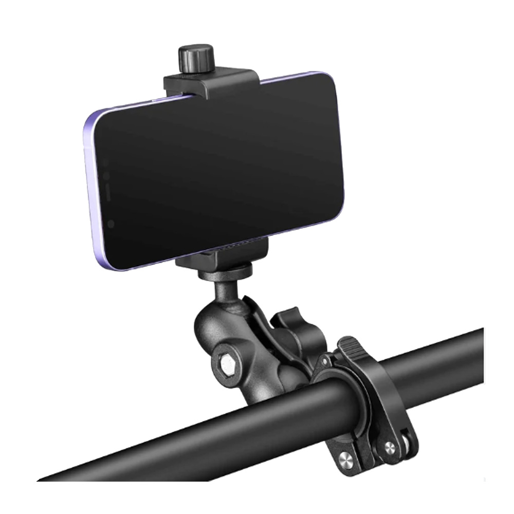 Una abrazadera resistente y con múltiples opciones de conexión hacen al Ulanzi MP-5 ideal para garantizar que puedas tomar imágenes en tu bicicleta o motocicleta tanto con una GoPro como con tu teléfono inteligente.