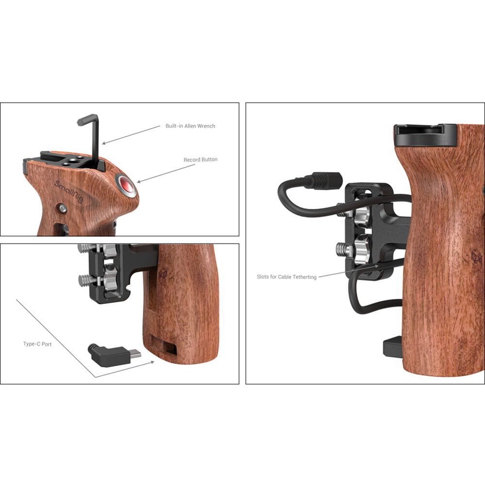 Mango empuñadura lateral de madera SmallRig 3323 acople de ¼” y botón de Start/Stop remoto.