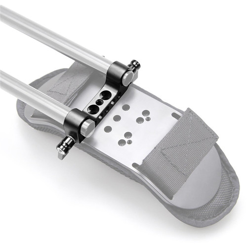 Fabricado en aluminio, se monta en el sistema rig de cámara vía roscas de 1/4″-20, e incluye perillas de ajuste para los rieles. Las rieles están separadas 60mm.