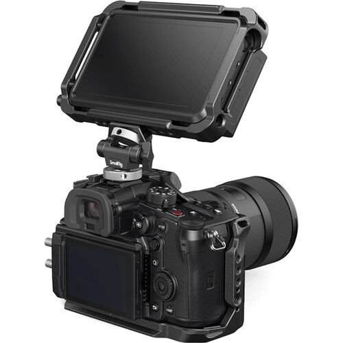 Se acopla a la cámara por zapata fría. Su diseño permite inclinar el monitor 170 grados, y rotarlo 360 en sentido horizontal.