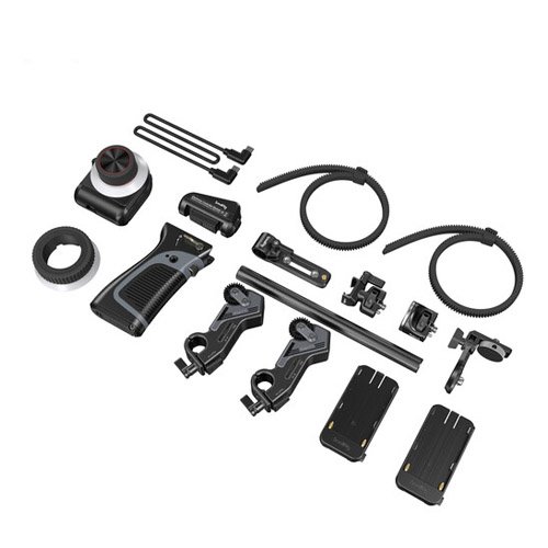 Este kit básico de Follow Focus inalámbrico MagicFIZ de dos motores SmallRig incluye incluye todo lo que necesita para comenzar a controlar el enfoque de su lente y otras funciones como el iris o el zoom mediante un controlador electrónico preciso, un controlador de volante y dos motores de enfoque de alto torque mientras está montado en su equipo de hombro portátil. El kit también incluye un adaptador de monitor y un adaptador de soporte para hombro, y le permite controlar el funcionamiento/detención de su cámara mediante un cable opcional.