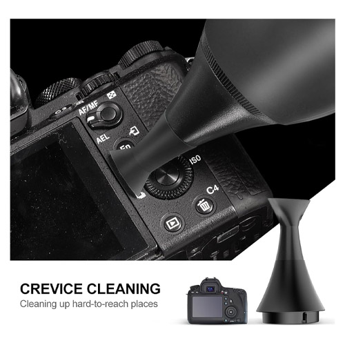 La pera sopladora automatica elimina partículas sueltas y peligrosas, sin contacto, y sin peligro para el lente. Su punta super suave, asegura también no dañar la óptica por contactos involuntarios.