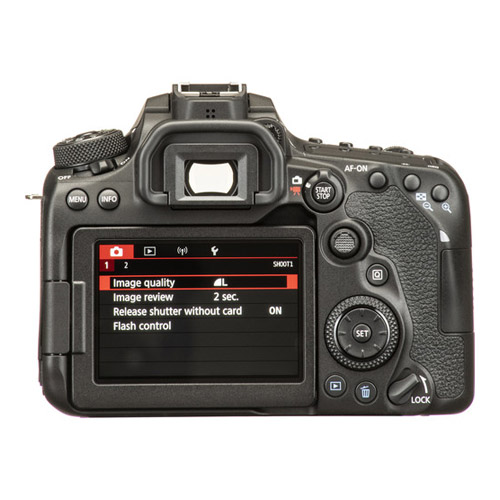 Con un impresionante sensor CMOS APS-C de 32,5 MP de alta resolución, el 90D es capaz de producir imágenes con una claridad y un rango dinámico notables, así como un amplio rango de sensibilidad de ISO 100-25600 y bajo ruido para permitir trabajar en situaciones de iluminación difíciles. El sensor y el procesador de imagen también logran un rendimiento rápido en todo el sistema de la cámara, incluida la capacidad de disparar continuamente a hasta 10 fps, grabar video UHD 4K30p o grabar video Full HD 1080p de alta velocidad a 120 fps.