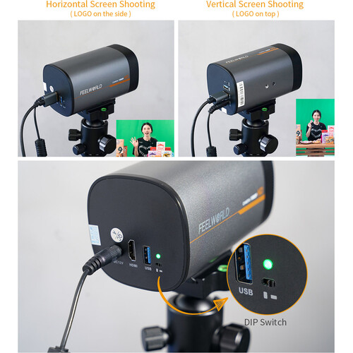 Orientaciones de disparo horizontal y vertical: Ya sea que estés transmitiendo en vivo a través de YouTube, TikTok, Instagram u otras plataformas de redes sociales, la cámara HV10X te permite cambiar fácilmente entre tomas horizontales y verticales. Los hilos de montaje en la cámara te permiten montarla en la orientación adecuada, mientras que un interruptor DIP cambia el modo de grabación según tus necesidades.