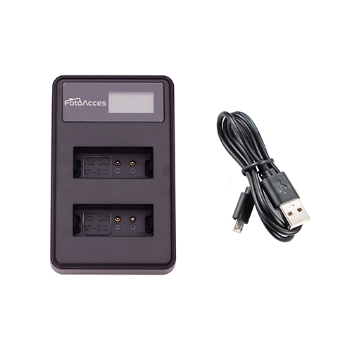 Cargador inteligente DOBLE marca FotoAcces, para baterías tipo Canon LP-E12.