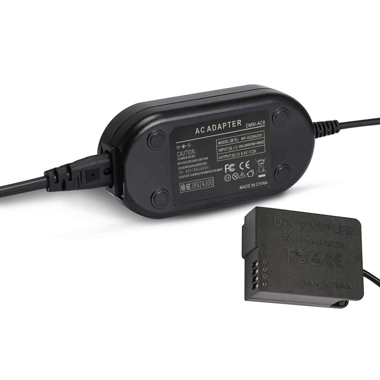 Adaptador de corriente AC de pared, batería hueca, dummy, para cámaras fotográficas Panasonic que utilicen baterías del tipo DMW-BLC12 y DMW-BLC12ED, DMW-BLC12PP. Se instala en la cámara, reemplazando la batería original.
