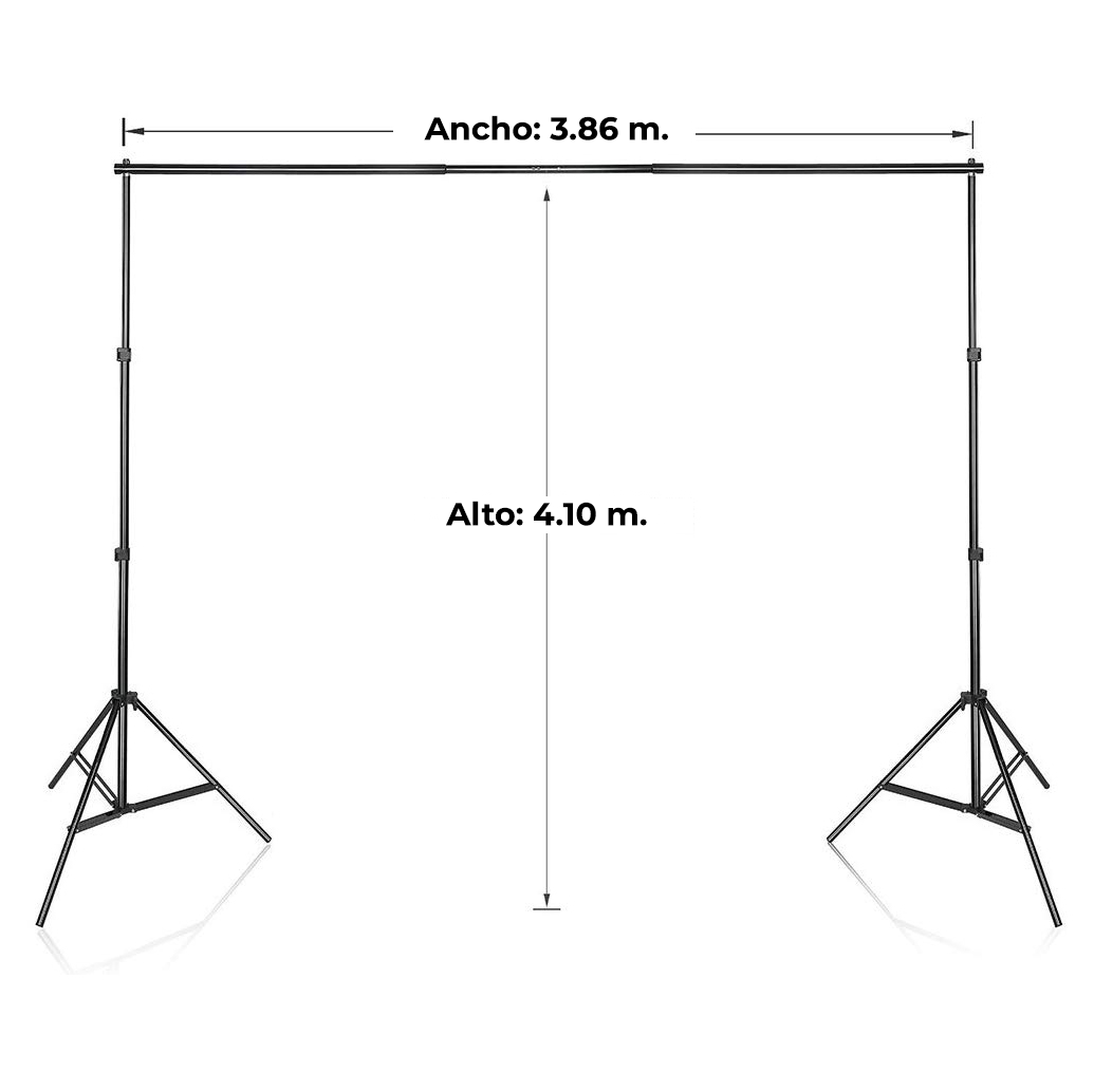 Estructura Triple B015, de 4.10 x 3.86 metros, para tres fondos fotográficos, con bolso de transporte.