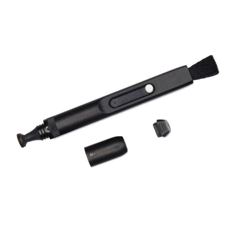 El lado opuesto del lápiz incorpora una brocha de nilón de alta calidad, suave y fina, antiestática, para remover polvo y suciedad de la cámara, sin causar rayones.