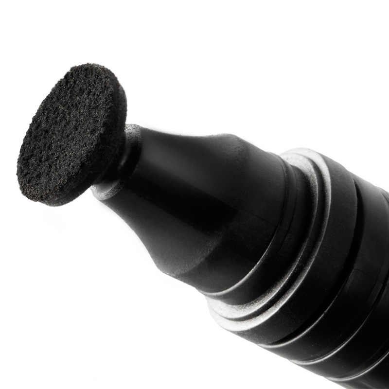 Lápiz para limpieza de lentes y cristal óptico VSGO V-P01E, con punta multilaminar de nano partículas de carbono activo. La estructura química del lápiz absorbe manchas de grasa, huellas digitales, y suciedad sin dañar el recubrimiento del lente.