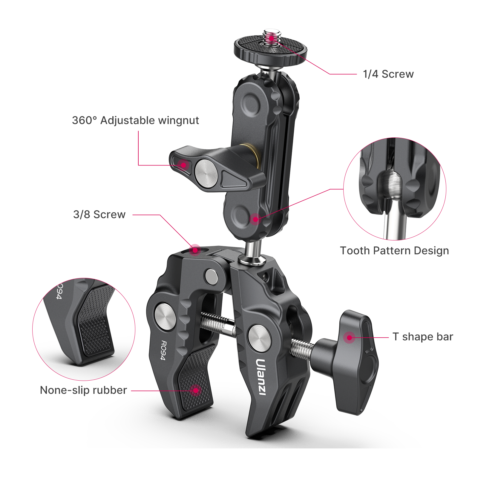 Tenaza super clamp y brazo articulado Ulanzi R094 de 5.5”.
