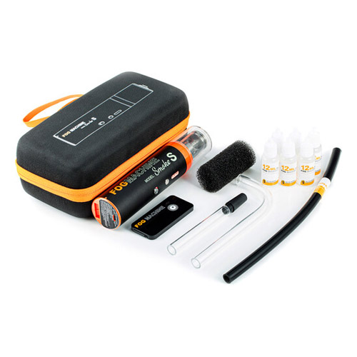 El Smoke S cuenta con una batería interna de iones de litio que puede proporcionar hasta 25 minutos de humo continuo y puede cubrir un área de 20 metros cúbicos en un solo minuto. El kit incluye seis botellas de líquido para crear humo, un control remoto, una manguera de silicona, un hard elbow, un tubo recto duro, una boquilla de alta presión y un filtro de humo líquido. También se incluyen un cable de carga USB-C y un estuche de transporte.