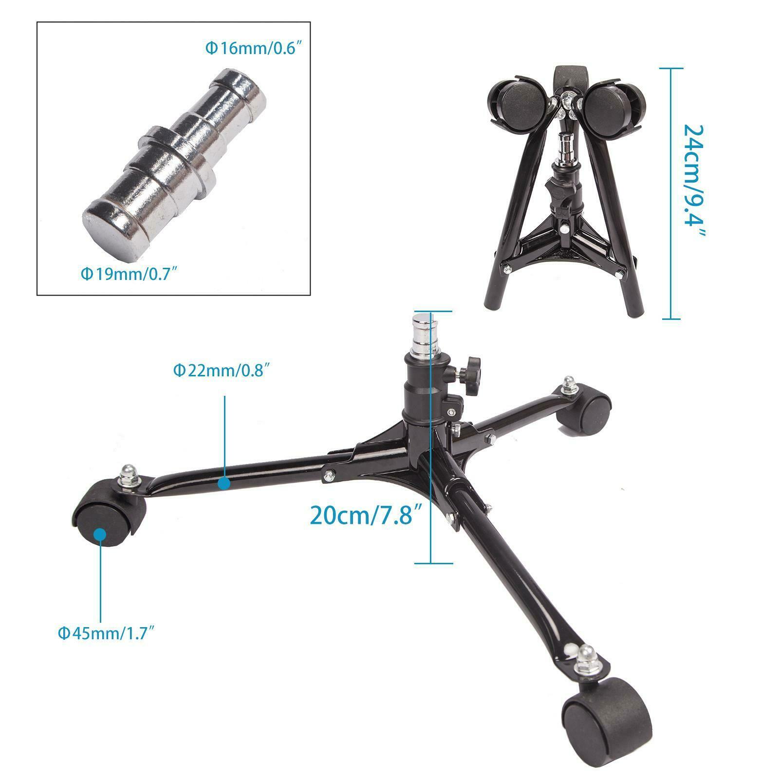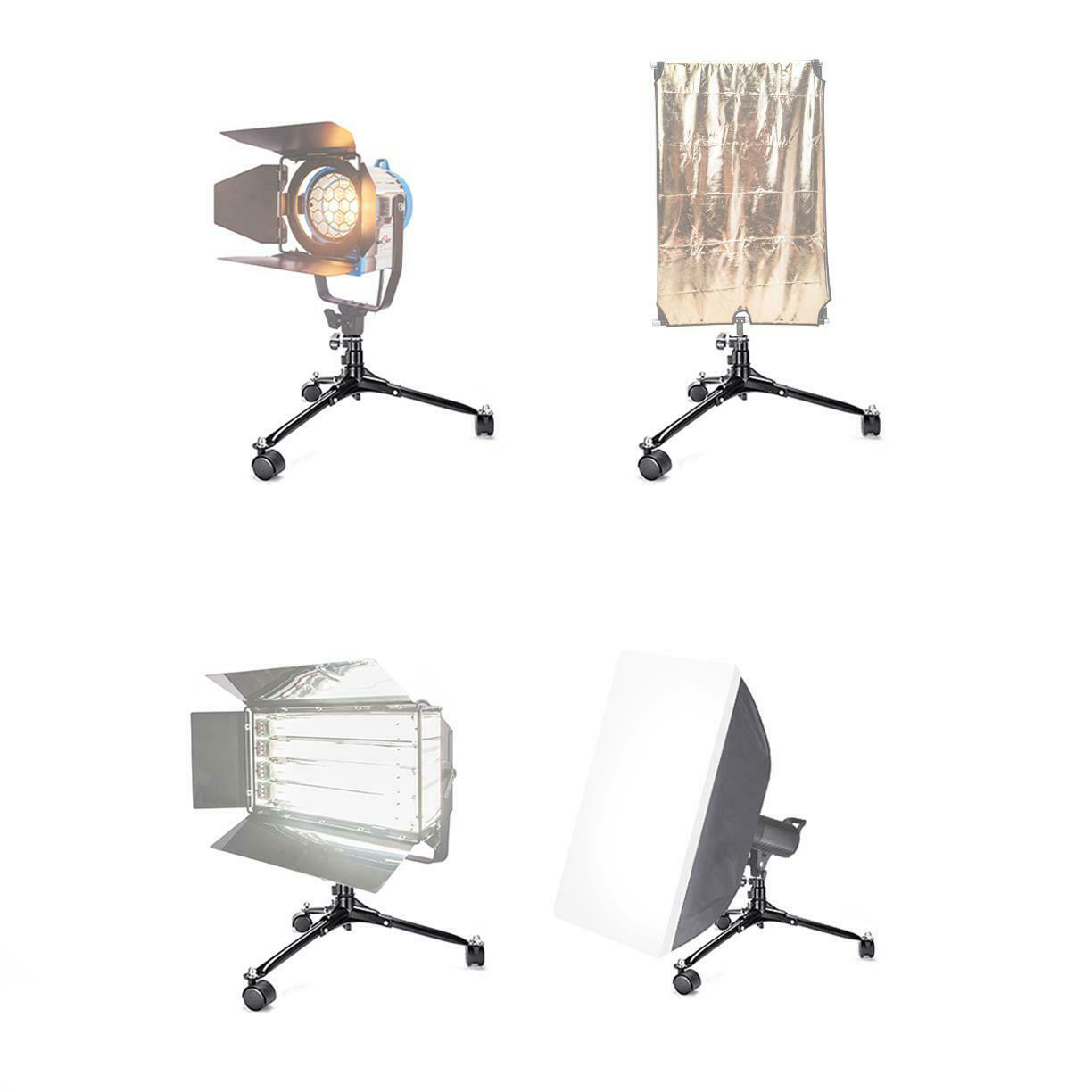 Pedestal de iluminación y accesorios de 20cm de alto, con ruedas.