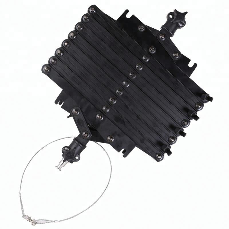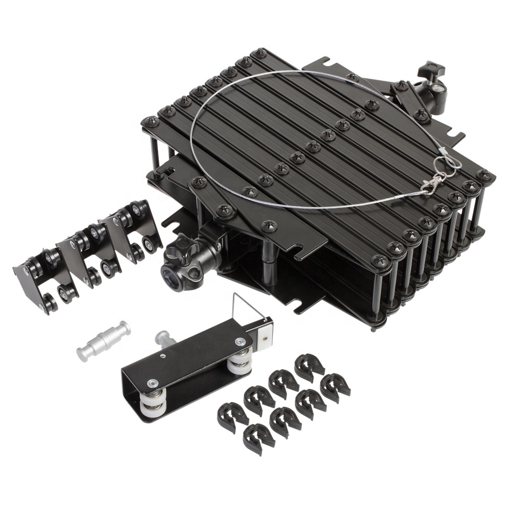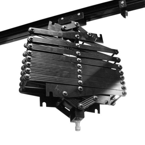 Sistema de rieles de techo para fotografía y video, compuesto de 3 pantógrafos y 2 rieles móviles.