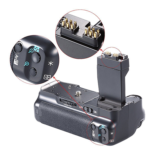 Battery Grip genérico tipo BG-E8 para cámaras Canon EOS 550D, 600D, 700D, T2i, T3i, T4i, T5i.