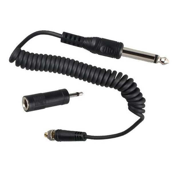 Cable de sincronización Yongnuo LS-PC635, con terminal PC de un lado, y terminal de 3.5mm (1/8”) del otro. Se incluye un adaptador de 3.5mm (1/8”) a 6.35mm (1/4”).