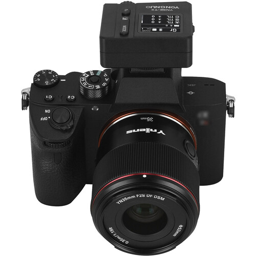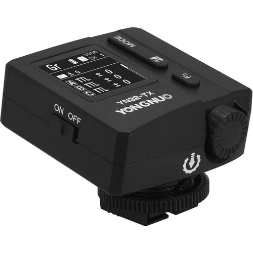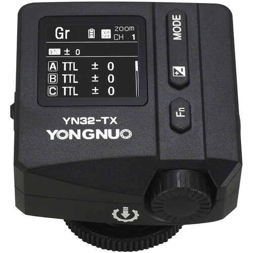 El transmisor de flash inalámbrico Yongnuo YN32-TX TTL de 2,4 GHz es compatible con el sistema de disparo por radio RF Yongnuo y cámaras Sony con montura de zapata MI. Ofrece cinco grupos de control de flash independientes con 16 canales y es compatible con los modos TTL, manual, múltiple y grupal. Permite la sincronización de alta velocidad hasta 1/8000 s y cuenta con una batería de iones de litio de alta capacidad incorporada. La pantalla TFT-LCD integrada muestra el tiempo de funcionamiento de la batería en tiempo real.