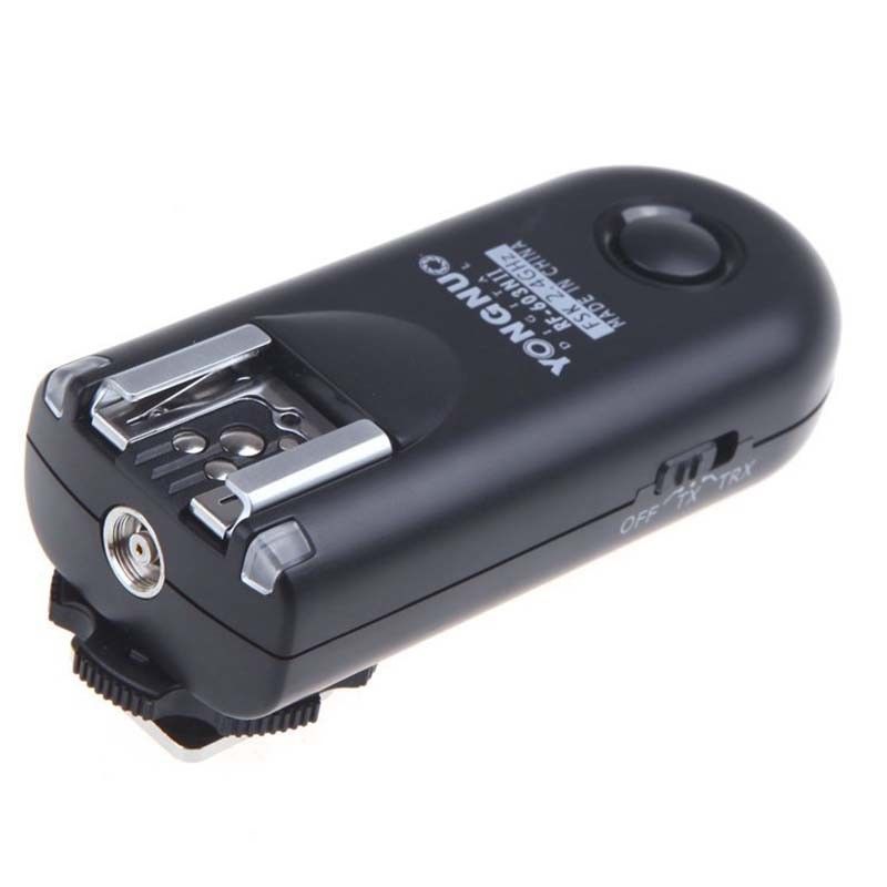 Kit de dos transceptores manuales Yongnuo RF603NII N1, especialmente diseñado para cámaras Nikon, pero con capacidad también de disparar flashes remotos junto a cámaras Canon, Pentax, Sony, Olympus, Panasonic, Samsung, entre otras cámaras de zapata estándar.