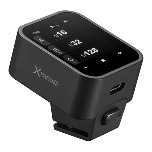 Con un diseño compacto, liviano y sencillo, el Xnano C presenta una interfaz de pantalla táctil intuitiva con controles para acceder y cambiar su configuración. Como parte del sistema de radio inalámbrico Godox X, el Xnano C ofrece un alcance inalámbrico de 328′ con una frecuencia de 2,4 GHz para activar flashes compatibles de manera efectiva y confiable. Este modelo es compatible con el sistema E-TTL/E-TTL II de Canon, incluido el soporte para sincronización de alta velocidad de hasta 1/8000 segundos. Los usuarios pueden ajustar la compensación de la exposición del flash de -3 a +3 EV, así como controlar de forma inalámbrica la luz de modelado, la configuración del zoom y más. Hay un puerto USB-C para actualizaciones de firmware y para cargar la batería interna de la unidad. El elegante diseño del dispositivo viene en una pequeña bolsa de almacenamiento que cabe prácticamente en cualquier lugar para que lo tengas donde quiera que vayas.