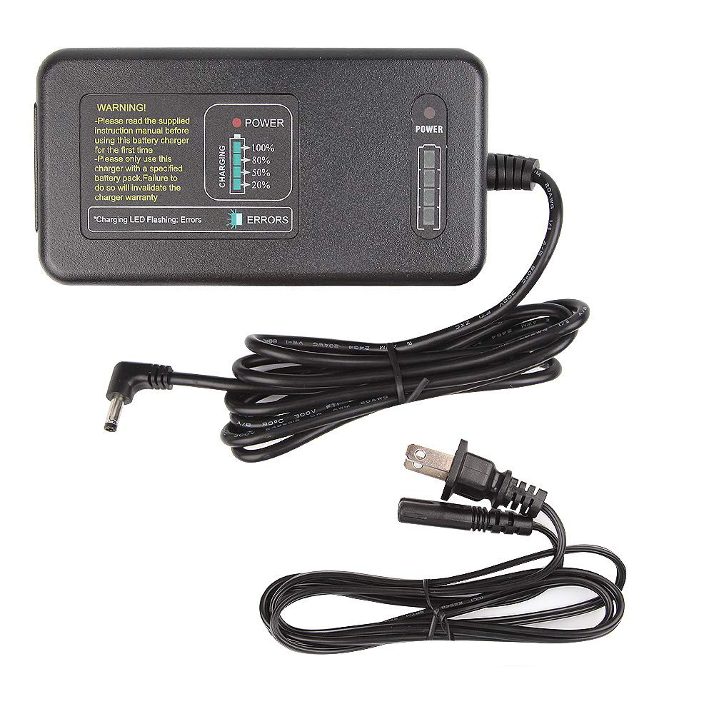 - Cargador de baterías Godox C400P con enchufe tipo USA.