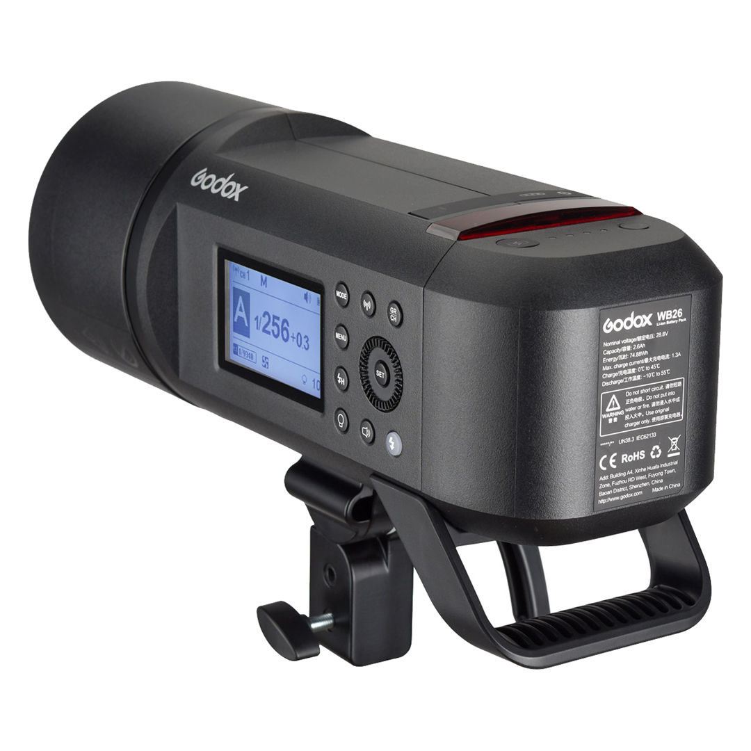 Ofrece hasta 600 watts de potencia en 25 pasos de ajuste desde 1/1 hasta 1/256, y viene con una batería de litio de 2600 mAh / 28.8 voltios, capaz de ofrecer hasta 360 disparos a full potencia (1/1) del flash. En forma alternativa, puede operar su flash conectado a la pared con el adaptador opcional (no incluido).