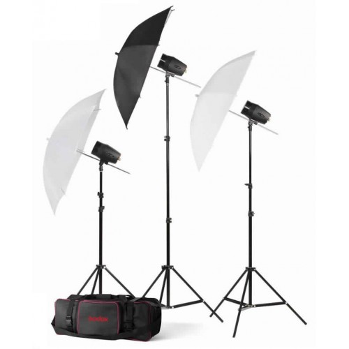 Kit Godox K180-A, con 3 flashes K180 Mini Master de 180 watts cada uno