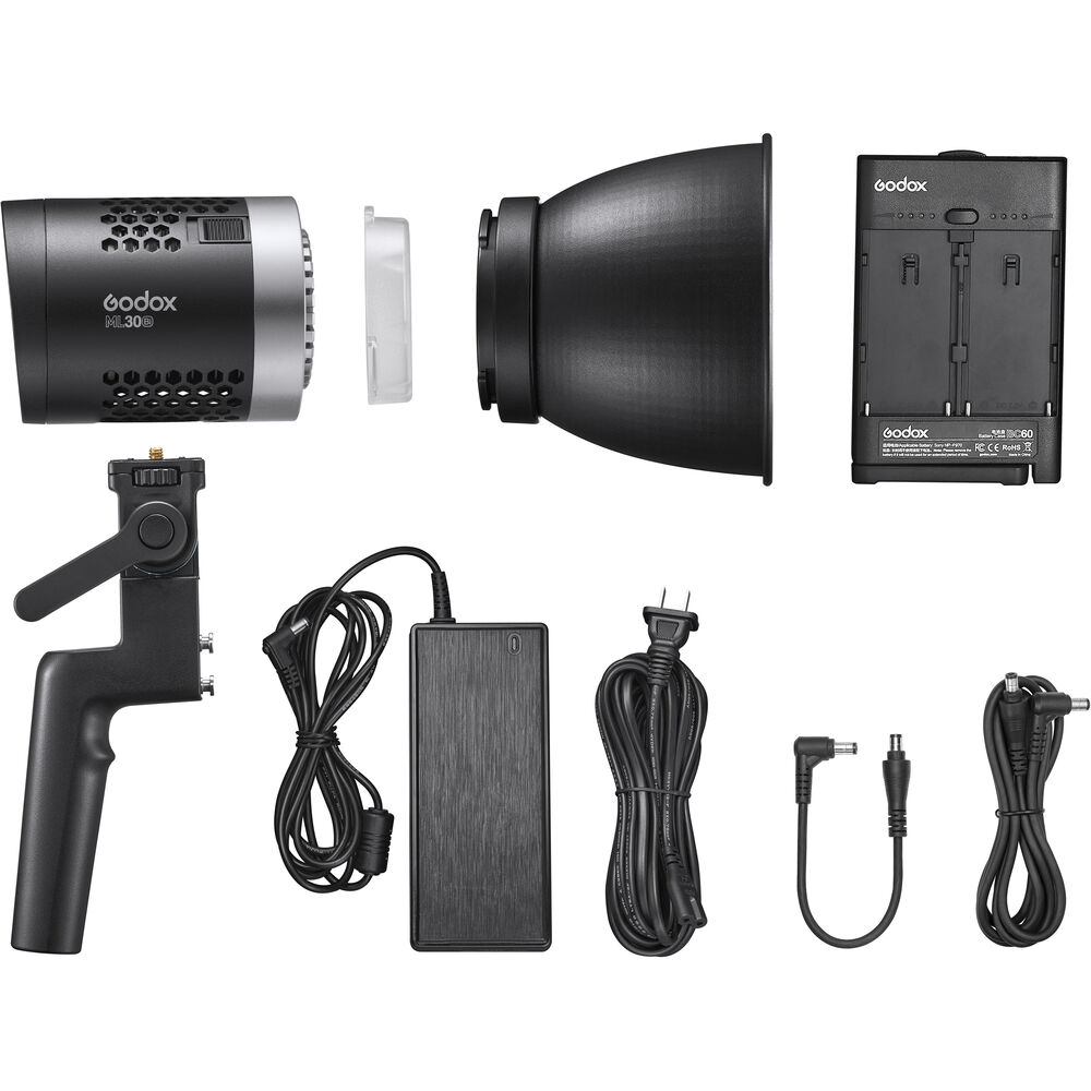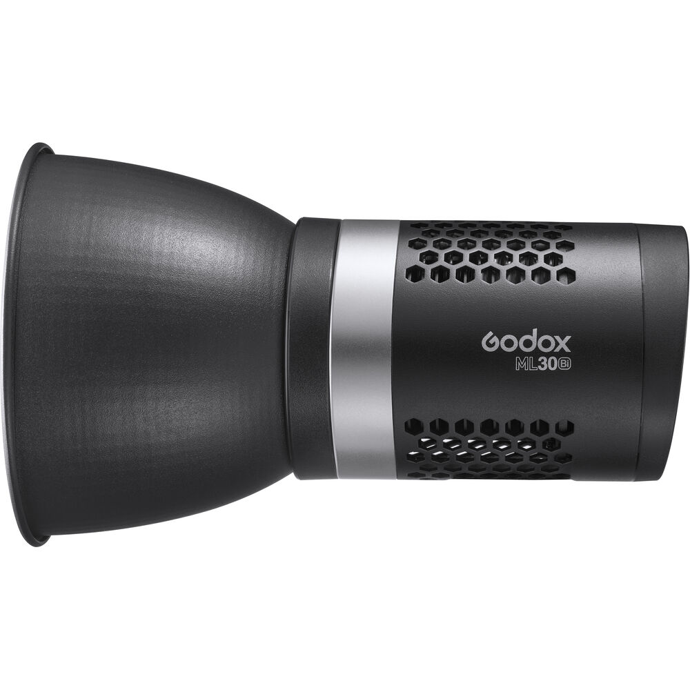 Luz continua bicolor super compacta Godox ML30Bi, de 40 watts, luz de día y cálida, modo silencioso, efectos especiales, y capacidad de ser alimentada por fuente AC a la pared, o por 2 baterías del tipo Sony NP-F970 (no incluidas).