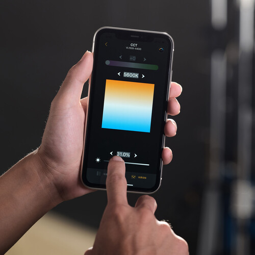 La luz tiene clasificaciones CRI y TLCI de 96 para una reproducción precisa del color. Cuenta con un receptor integrado de 32 canales y 16 grupos para control inalámbrico desde un control remoto RC-A6 de 2.4 GHz o a través de Bluetooth desde una aplicación en el teléfono. Tiene una montura frontal Bowens que le permite utilizar una amplia gama de modificadores de luz.