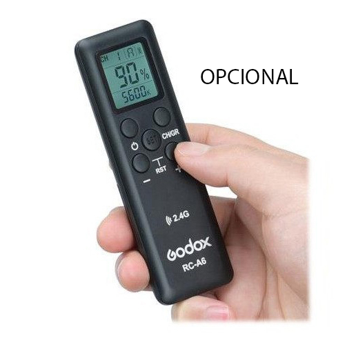 Control remoto inalámbrico OPCIONAL (no incluido) para la luz continua, y receptor Sistema X incorporado para el flash.