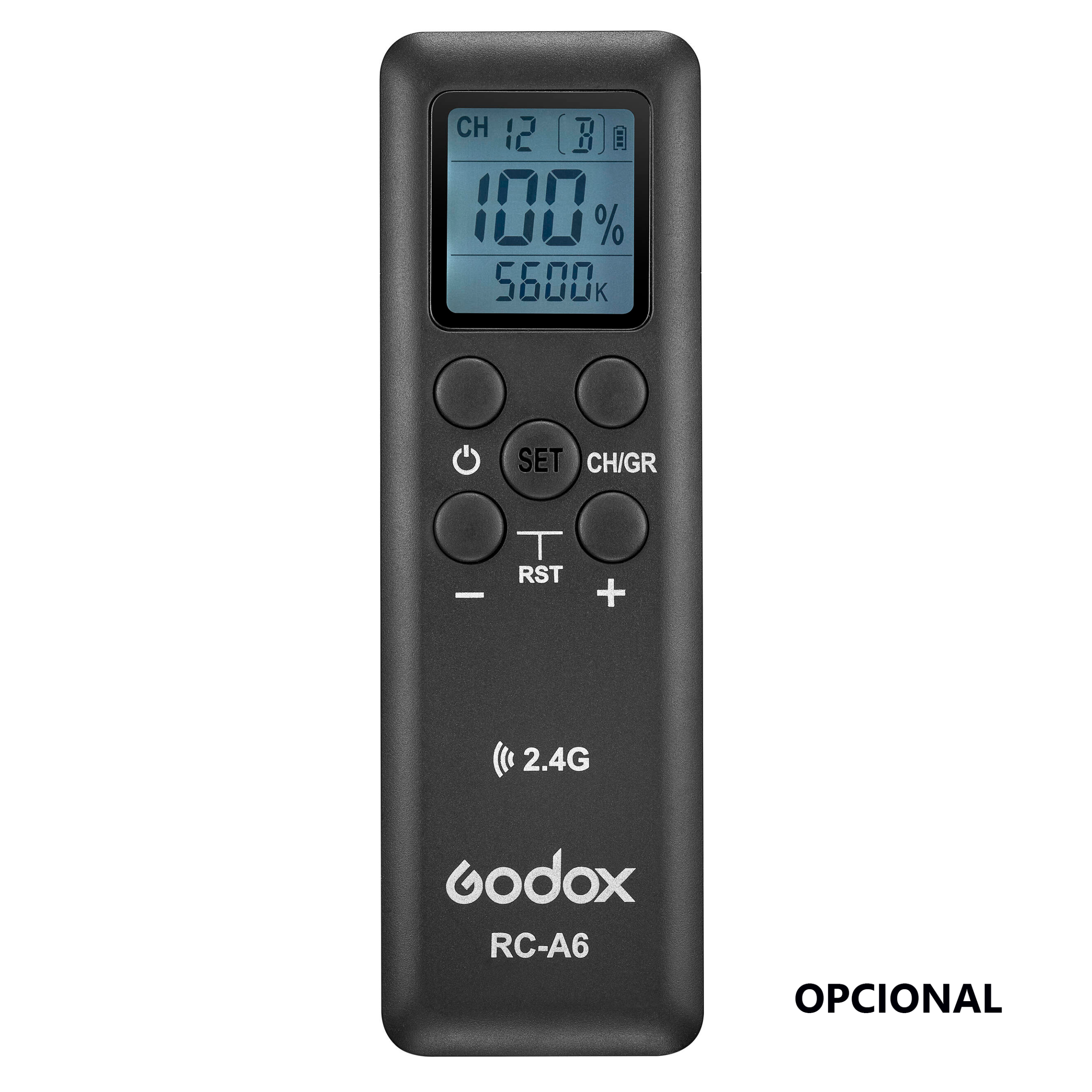 Puede ser controlado remotamente desde un celular por Bluetooth, mediante DMX, o mediante un control remoto Wifi (de venta por separado).