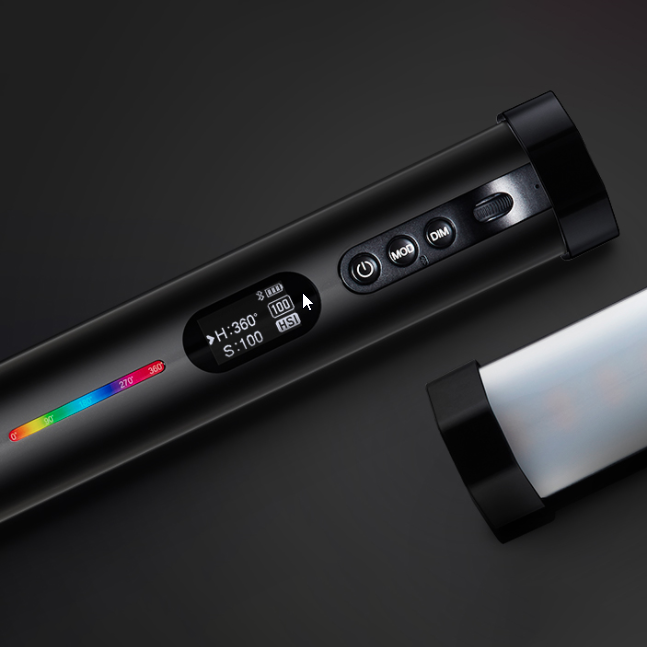 Sus colores pueden modificarse bajo parámetros RGB, CCT, HSI para mas de 36,000 colores, y adicionalmente ofrece 13 efectos especiales, cada uno con 3 variaciones distintas.