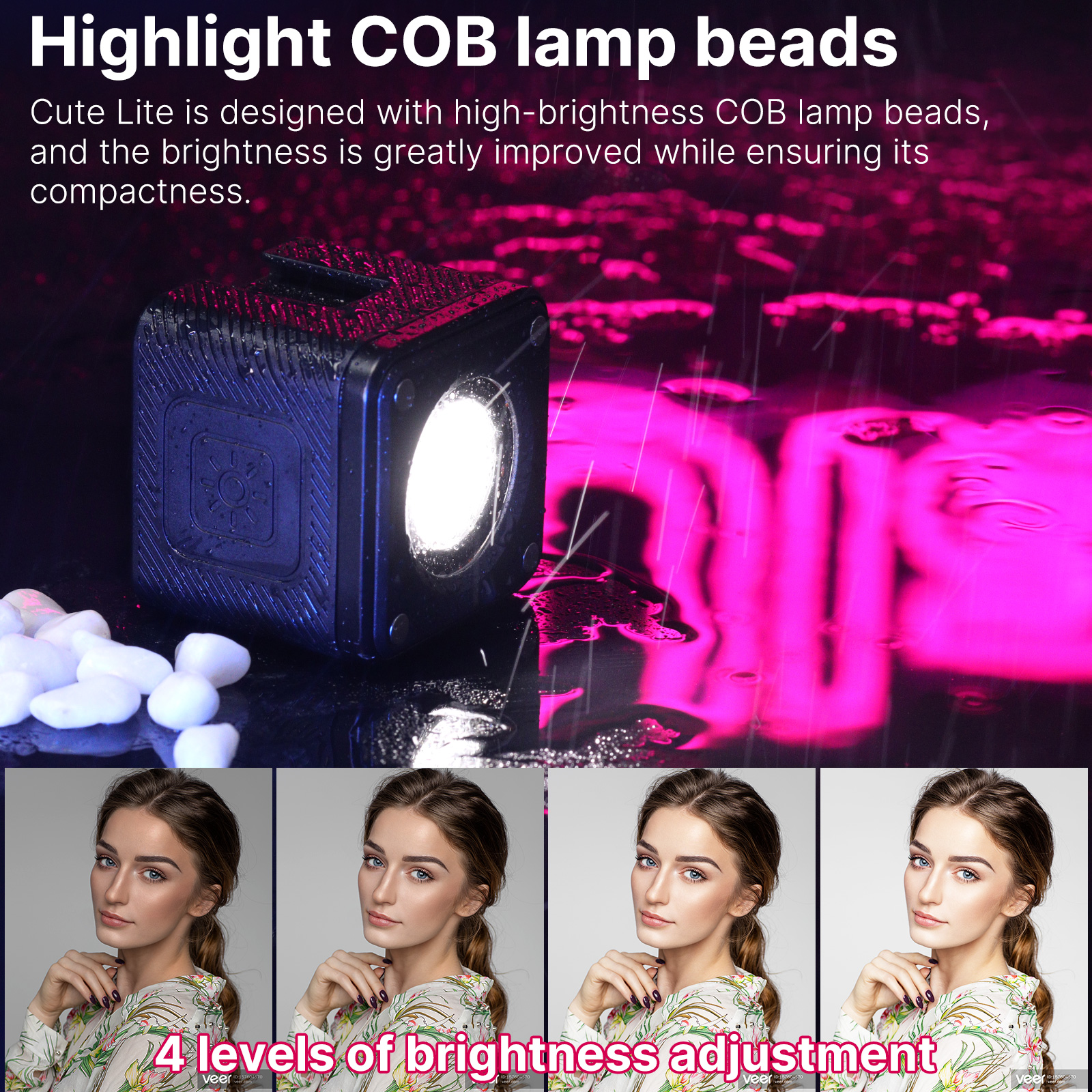 Con su gran potencia, y kit completo de accesorios magnéticos incluidos, esta LED provee luz principal o de relleno para sus selfies, aventuras bajo el agua, efectos especiales con agua, o fotografía de productos.
