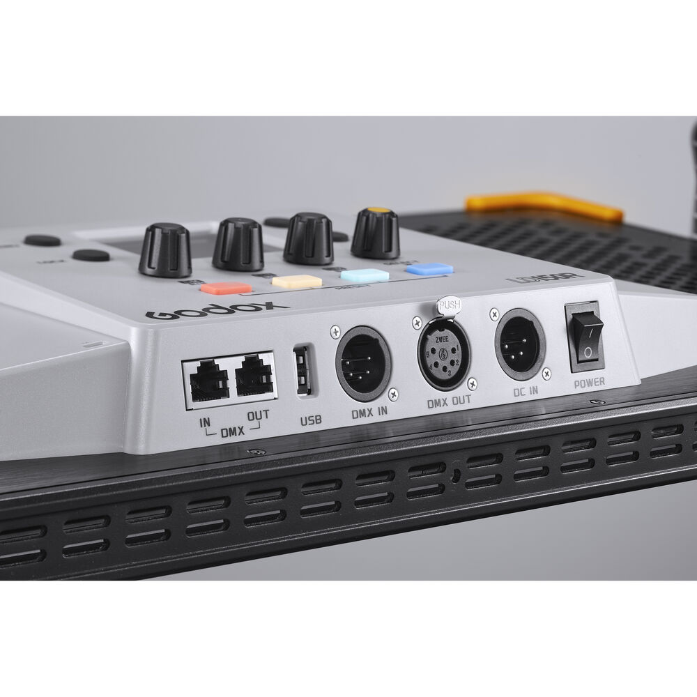 Panel LED RGB Godox LD150R, de 150 watts, con efectos, DMX, control inalámbrico, alimentación AC y DC.