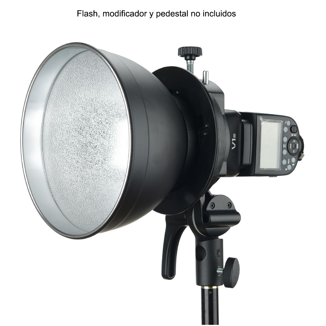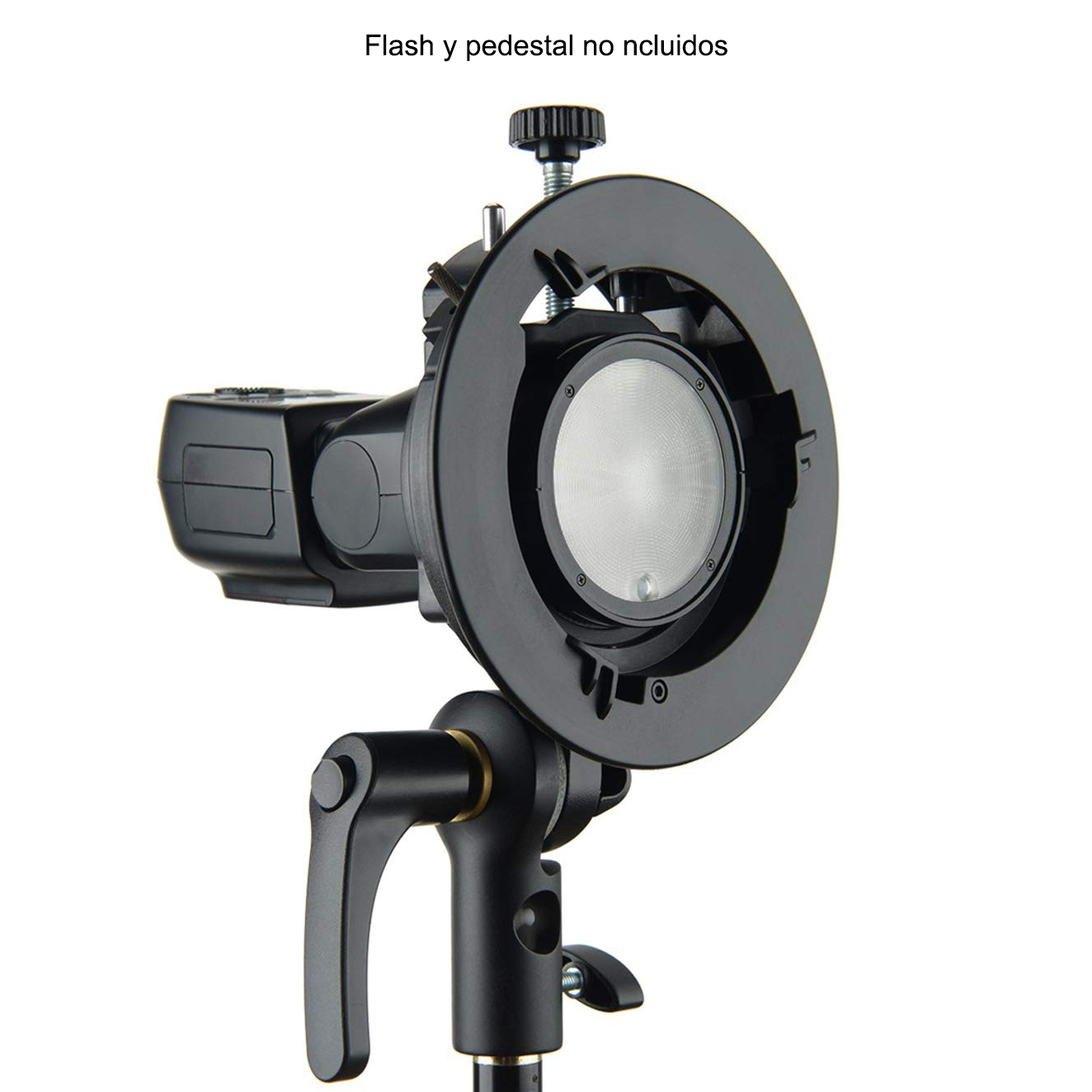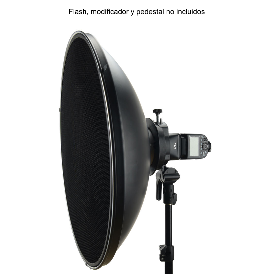 - Acople Bowens para modificadores de iluminación variados, Softboxes, Beauty Dish, etc.