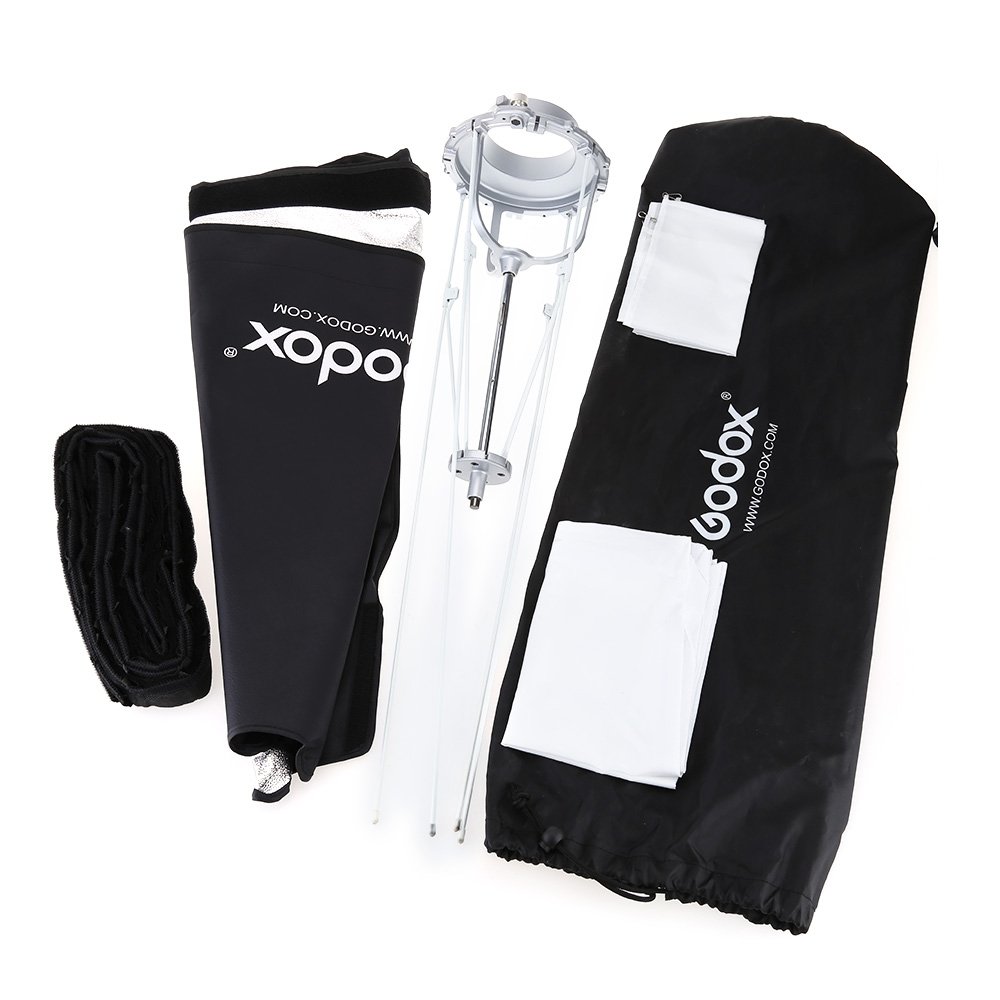 Softbox Godox de 60 x 90 cm con acople Bowens, y panal de abeja (grid), y ensamble rápido tipo sombrilla.