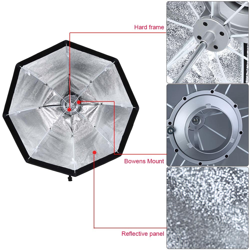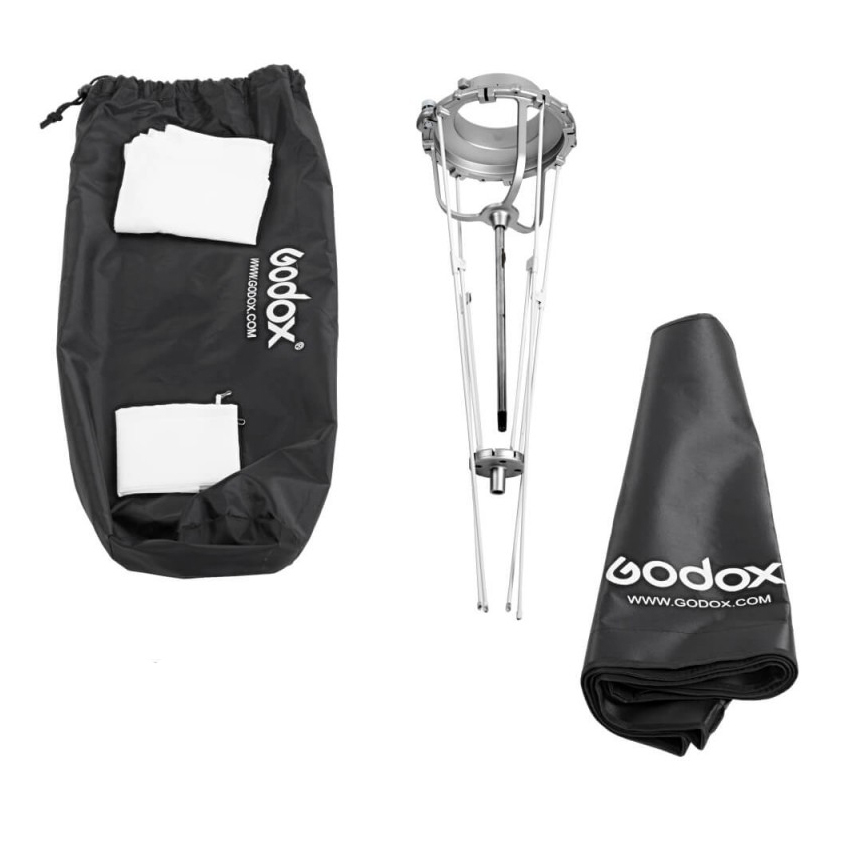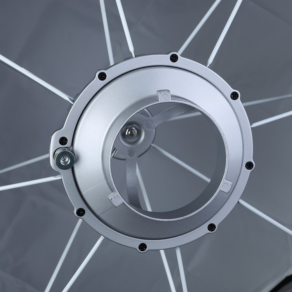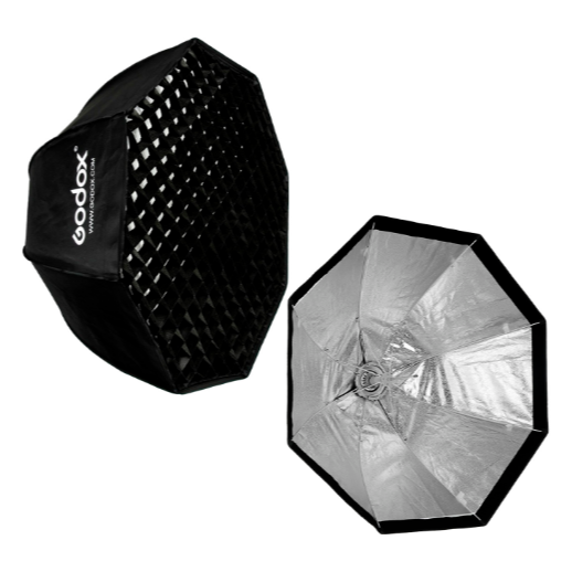 Softbox Octogonal Godox de 95cm con acople Bowens, panal de abeja (grid), y ensamble rápido tipo sombrilla.