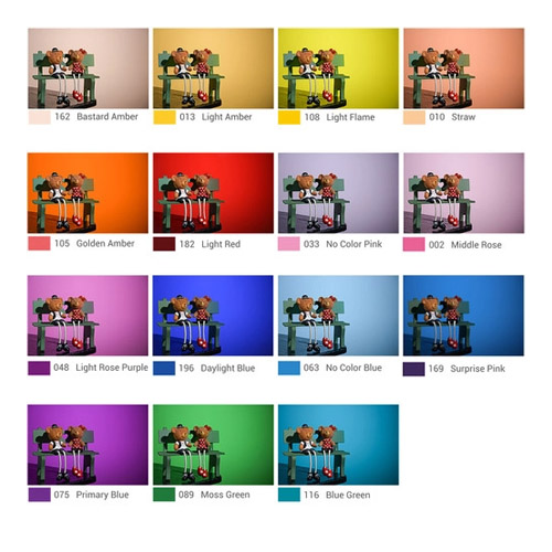 15 colores diferentes de filtros de geles de color, cada color tiene 2 piezas
