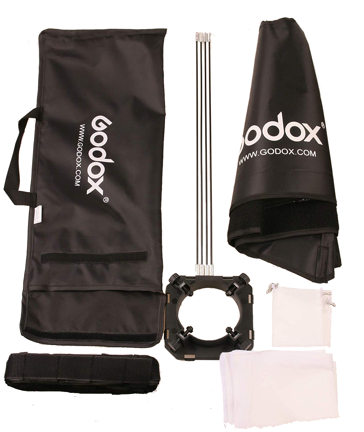 Softbox Godox de 50 x 70 cm con acople Universal, y panal de abeja (grid), para ser utilizado con Flashes de Estudio tipo Godox E250.