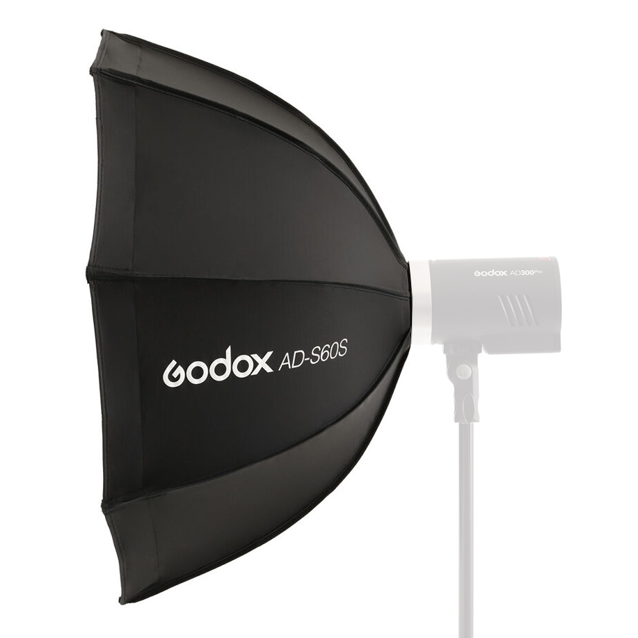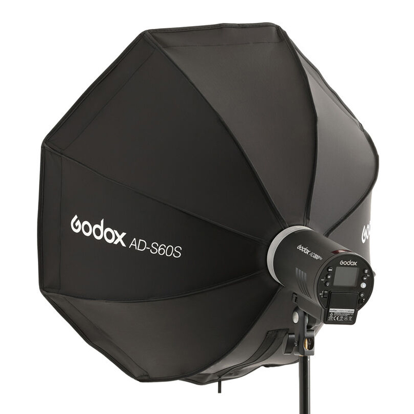 Octabox Godox AD-S60S de 60cm de armado rápido, con panal de abeja y montura Godox, para flashes tipo AD300Pro, AD400Pro, y luces LED continuas como la ML60D, ML60Bi, y otras futuras.
